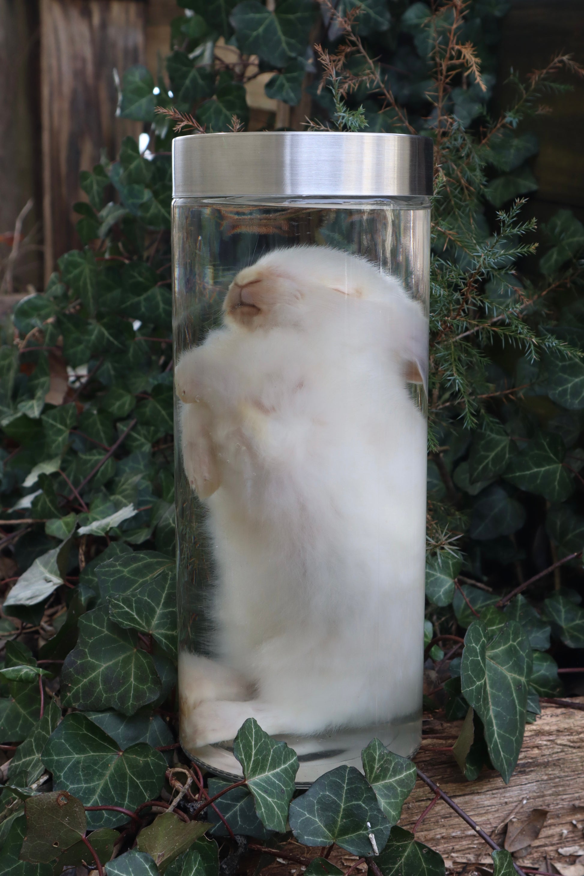 White Rabbit Wet Specimenfor sale! You will receive the Wet Specimen Rabbit pictured. This bunny has been professionally preserved in formalin in our studio from start to finish and is kept in 70% isopropyl Alcohol. You will receive the 11” jar pictured. Please refer to photos!